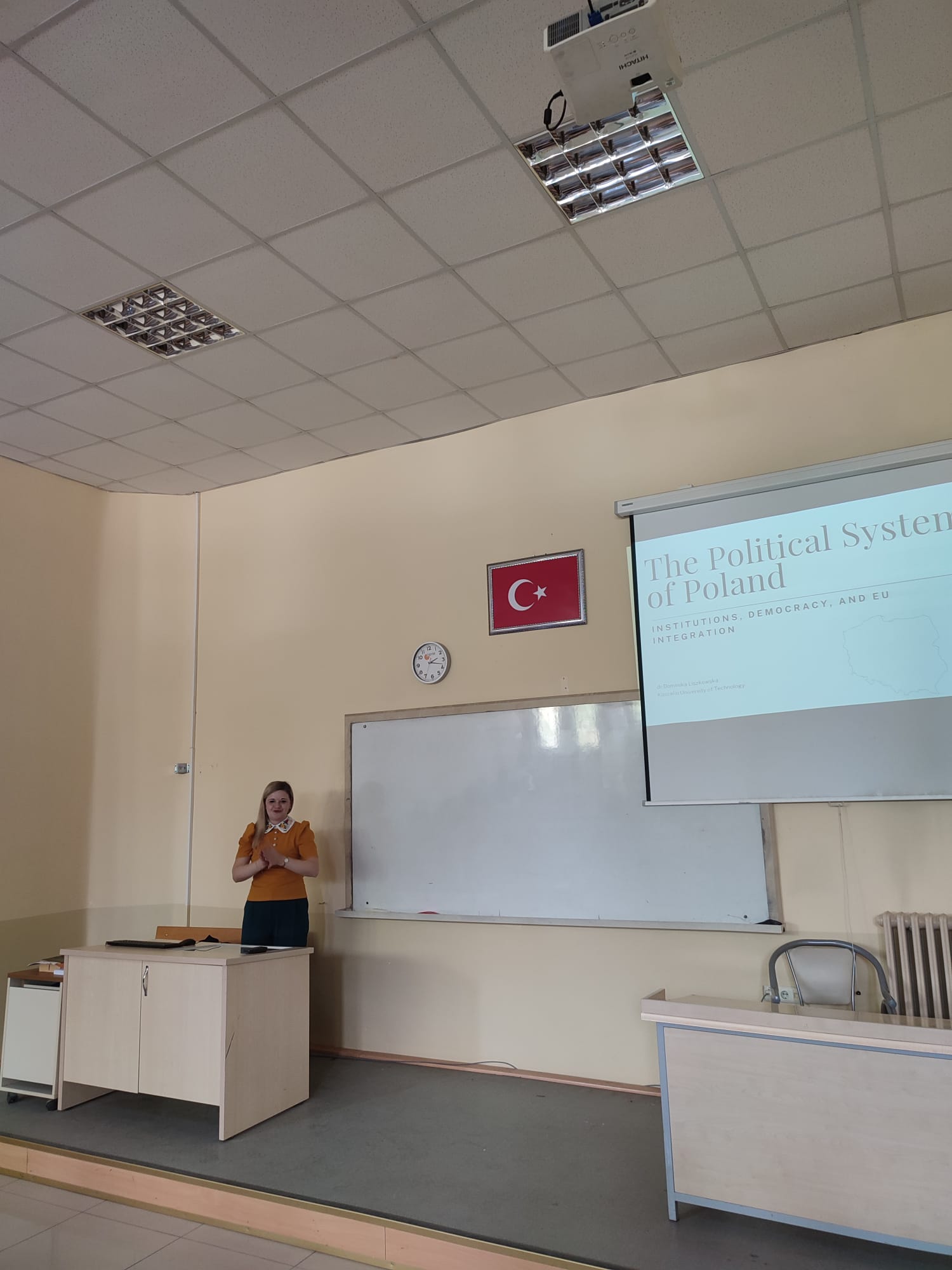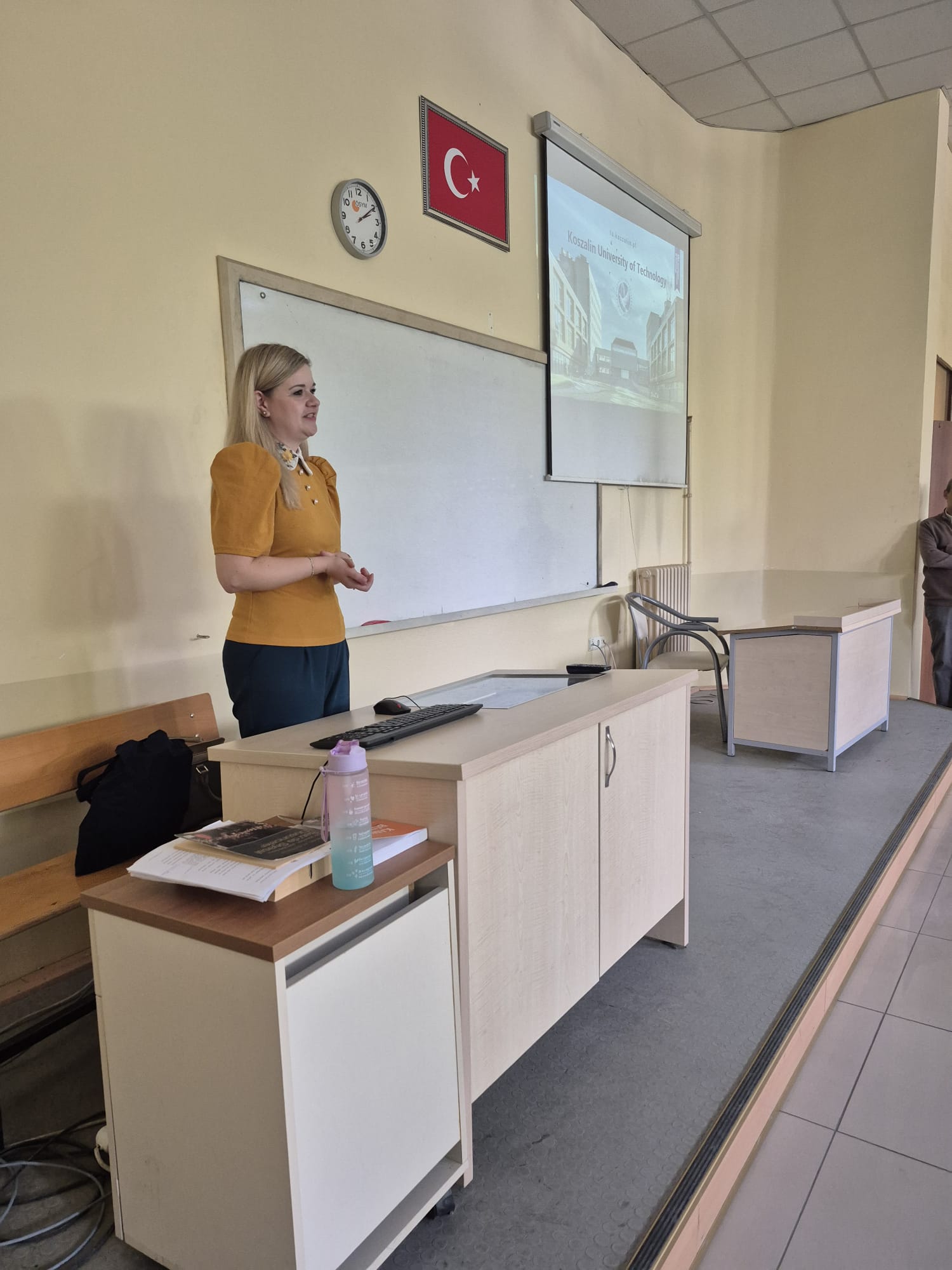 Erasmus + Programı Personel Hareketliliği çerçevesinde Polonya'dan meslektaşımızı bölümümüzde ağırladık. Koszalin Teknoloji Üniversitesi'nden Dominika LISZKOWSKA ile Bölüm Başkanımız Doç. Dr. Ali Sırrı YILMAZ , Bölüm Başkan Yardımcımız Dr. Öğr. Üyesi Aslı ARSLAN ve Bölüm Erasmus Koordinatörümüz Dr. Öğr. Üyesi İlke Bezen TOZKOPARAN ile bilgi paylaşımı ve ortak akademik çalışmalar konusunda fikir alışverişi yapıldı. Daha sonra Dominika LISZKOWSKA öğrencilerimize Avrupa Birliği, Polonya'nın AB'deki yeri ve politikaları sunumlarını yapıp öğrencilerimizin sorularını yanıtladı.